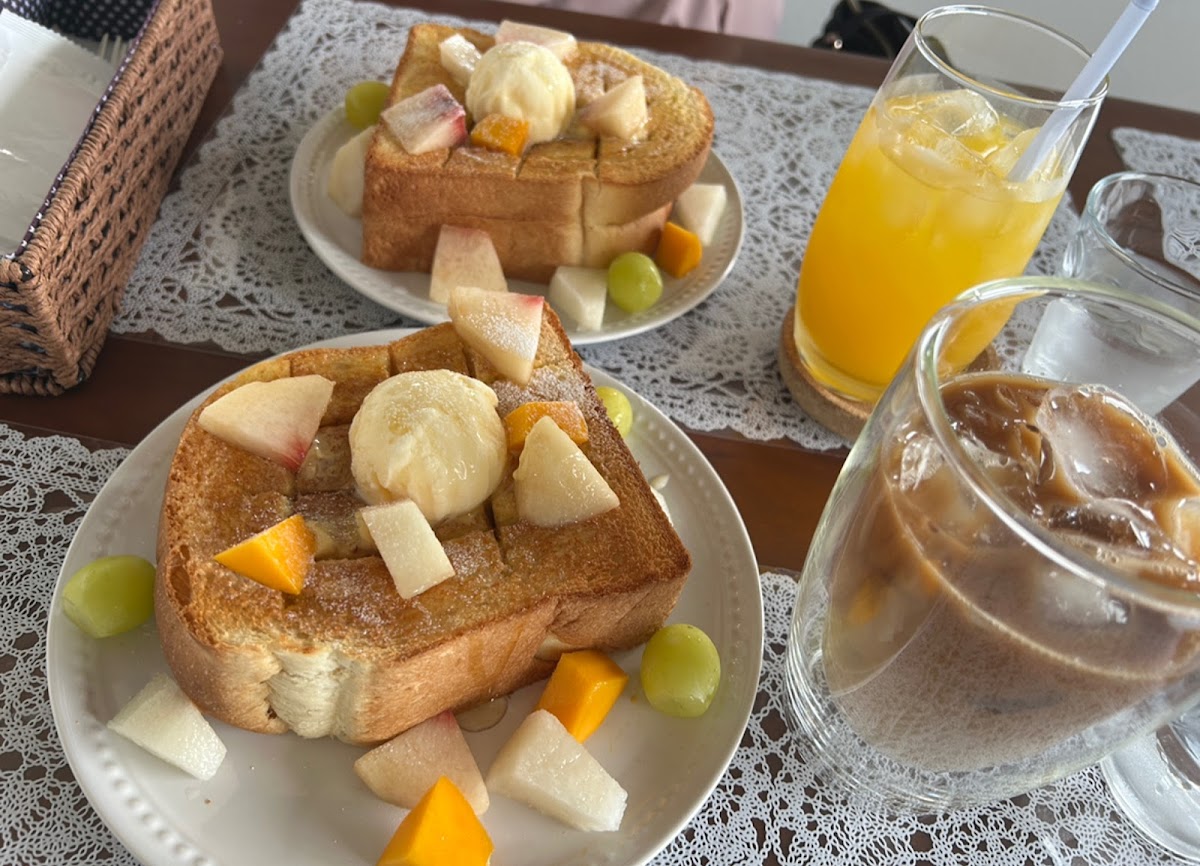 What sets Café Rin Rin apart is its signature dish: the フルーツハニートースト (Fruit Honey Toast). Imagine sinking your teeth into an astonishingly thick slice of toast, perfectly toasted with a golden, crispy exterior that gives way to a soft, fluffy interior. Topped with luscious seasonal fruits and drizzled with honey, this dish is not only a feast for the palate but also a visual delight, presenting an artful array of colors and textures.